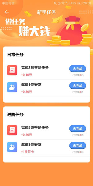 安卓版下载 大小:8.00 MB 下载:3256次 猫猫赚 支 持:安卓 分 类:手机游戏 大 小:8.00 MB 版 本:1.0.1 评 分: 开发者:杭州九吨科技有限公司 下载量:3256次 发 布:2020-03-14 10:05 手机扫码免费下载 #猫猫赚截图 #猫猫赚简介 猫猫赚是懒猫试玩旗下的安卓版试玩答题赚钱平台,躺着赚钱的APP,1元可提现。一款以答题形式为主的试玩APP,用户通过完成指定任务,从而获得丰厚的现金奖励,赚取的收益可通过微信方式进行提现。 怎么赚钱:填写邀请码TGNWEW领红包 1、APP首页点“喵抓一下”,每次点击试玩不同的任务; 2、完成新手任务,做任务,赚大钱,签到任务,连续签到更多奖励。